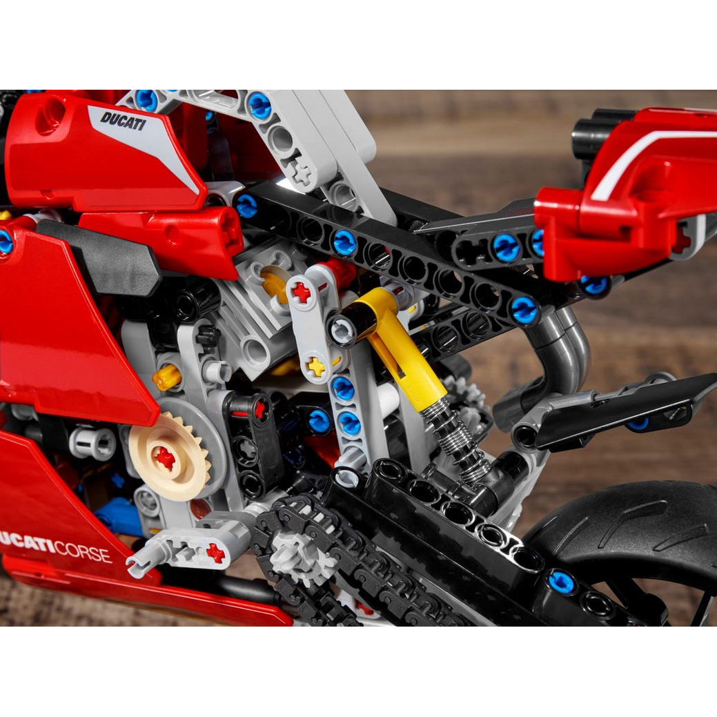 Com um visual de cortar a respiração, este LEGO® Technic™ Ducati Panigale V4 R capta o espírito e o design do original. É o primeiro modelo de motas na história da LEGO Technic que inclui uma caixa de velocidades para explorar diferentes velocidades e técnicas. Outras características originais incluem a direção, a suspensão dianteira e traseira para um movimento realista, bem como os travões de disco dianteiros e traseiros.
